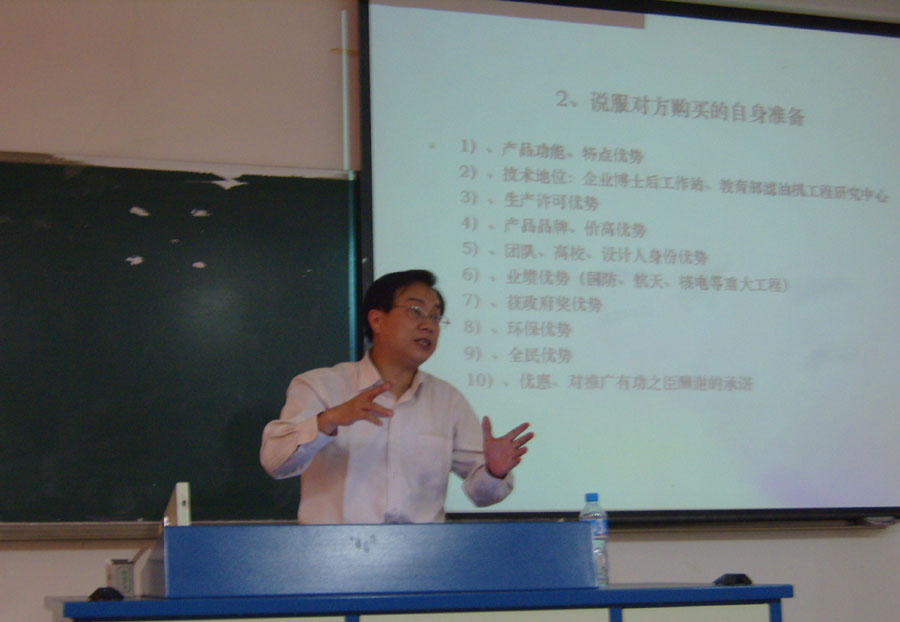 张贤明经理系国务院特殊津贴专家,国家长江学者评审专家,重庆市学术技术带头人,长期从事废油资源化技术技术与装备研究,成果颇丰。张经理的讲座以科学发展观为理论基础,强调了科学发展观目的在发展,关键在科学。并报告紧紧联系公司实际,通过大量真实的科研成果案例,向同学们介绍了公司废油资源化装备方面的优势资源,以及学校的特色科技产品。张经理在报告中强调,实践科学发展观难点在于实事求是,解放思想。同学们应以科学发展观为指导解放思想,求真于课堂,求知于社会,应以优势资源来推进社会实践活动,积极投身社会实践,努力培养自身的实际工作能力。