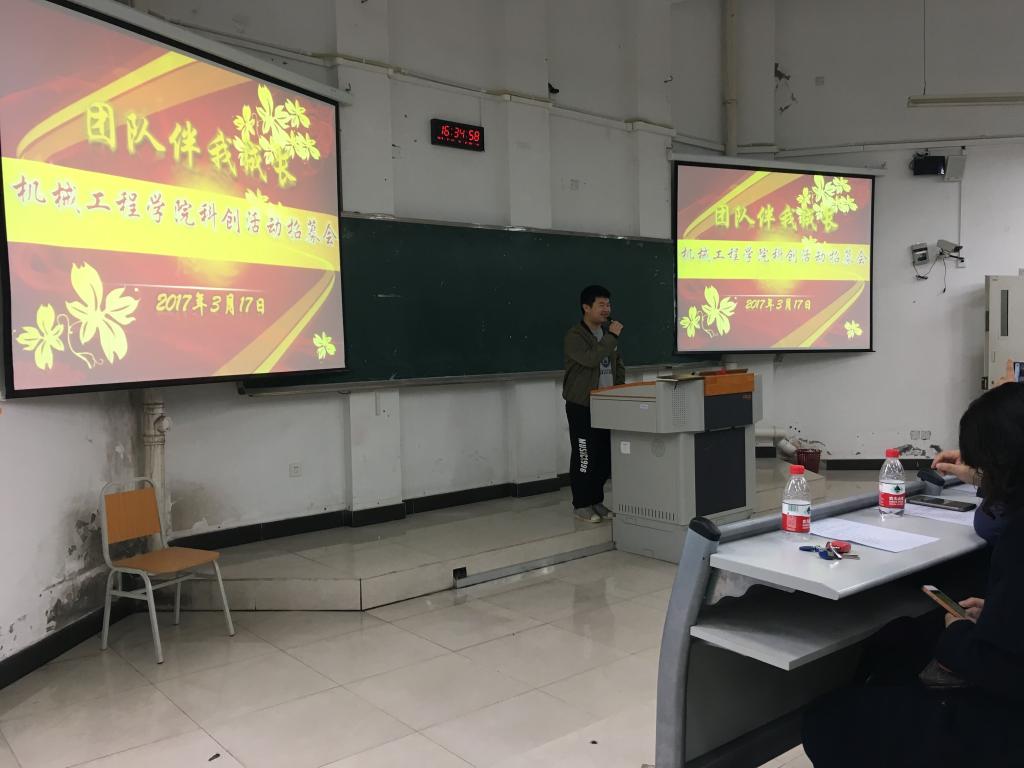 2017年3月17日下午16:10,公司第二届“团队伴我成长——员工科创团队招募宣讲会”在兰花湖20211教室举行。参加本次宣讲会的有总支刘洋书记、杜力经理、李平副经理、各系主任、实验室主任、工程训练中心主任、学团办主任、09级员工团队“卓越工程师小组”代表、jn江南两支员工科创团队--“机械师”团队、“汽车人”团队代表以及学院14、15、16级部分员工。本次宣讲会由公司学团办主任李玲主持。