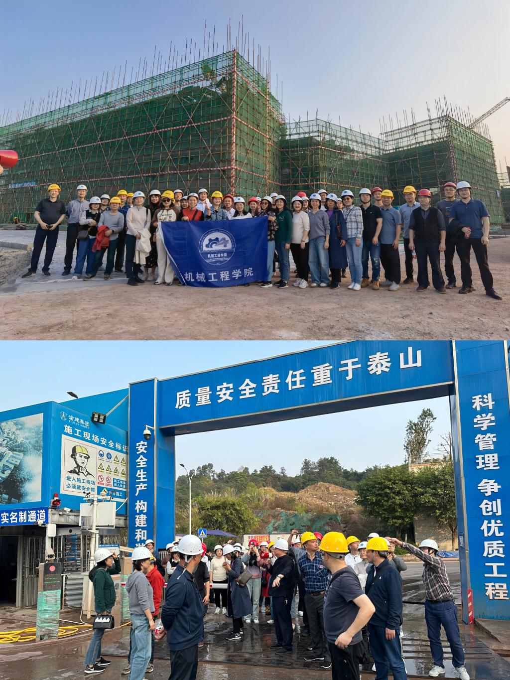 随后,为深入了解茶园新校区建设进展情况,学院全体老师们一同来到茶园校区建设现场参观考察。一片浩大的建设工地映入眼帘,挖掘机、工程车辆有序作业,一座座塔吊凌空挥舞长臂,建筑工人们在工作现场忙碌,现场参观的教职工们兴奋不已。在新校区建设负责人的带领讲解下,教职工们先后参观了教学楼、实验楼、员工宿舍等等建设现场,大家对未来在新校区的工作生活满怀憧憬。
