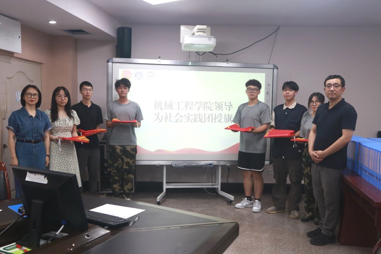 公司分团委书记刘静就2024年学院社会实践的整体安排情况进行了介绍。本次社会实践活动全院全员发动、涵盖内容丰富,覆盖面广,包括科技助基层,共话新未来的基层工作对接,反诈宣传,推普入乡,青少年之家科普讲堂及红色教育宣讲等。各个社会实践团员工负责人徐艳彦、余泽、甘武陵、杨俊然、吴易圃、刘磊依次发言,他们表示将努力团结协作,全力以赴,力争圆满完成各项实践任务。随后学院领导为社会实践团授旗。学院经理李平教授提出三点希望:第一,暑期社会实践要注重有特色、有亮点,实践团成员应承担应有的社会责任与担当,把握机会,积极发挥专业知识做好基层服务;第二,注重个人言行,互帮互助,团结合作,积极展现重工商大学子饱满的精神状态和昂扬的精神风貌;第三,增强团队意识,注重安全问题,校外期间相互关照与照应,相互支持与合作,注重安全,并鼓励大家学习基本的急救技能。公司党委书记杨娟发表重要讲话,提出三点要求:一是“看”,静下心仔细观察,一行一路,在实践中出真知;二是“做”,努力思考,争取做出学院特色,做出团队特点;三是“注意”,提前注意天气、灵活变更内容,注意人身安全、食品安全、财产安全。
