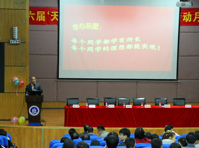 开幕式后武汉轻工大学教授孙亮波博士做了关于《创新人才培养及学科竞赛》的讲座。孙教授详细讲述了综合能力的内涵和如何培养老员工综合能力的问题。同时也列举了自己及由其指导员工的众多获奖作品,强调了创新人才培养及科技创新发展的重要性。指出机械精英人才之路就是参加学科竞赛与全国比赛,并提出三方面创新,使同学们对于该如何创新,如何将理论实践化有了更深层次的认知和反思。最后,孙教授鼓励同学们通过参加科技活动,提升专业素养和培养科技创新能力,成为基础知识扎实和创新能力强的优秀人才。