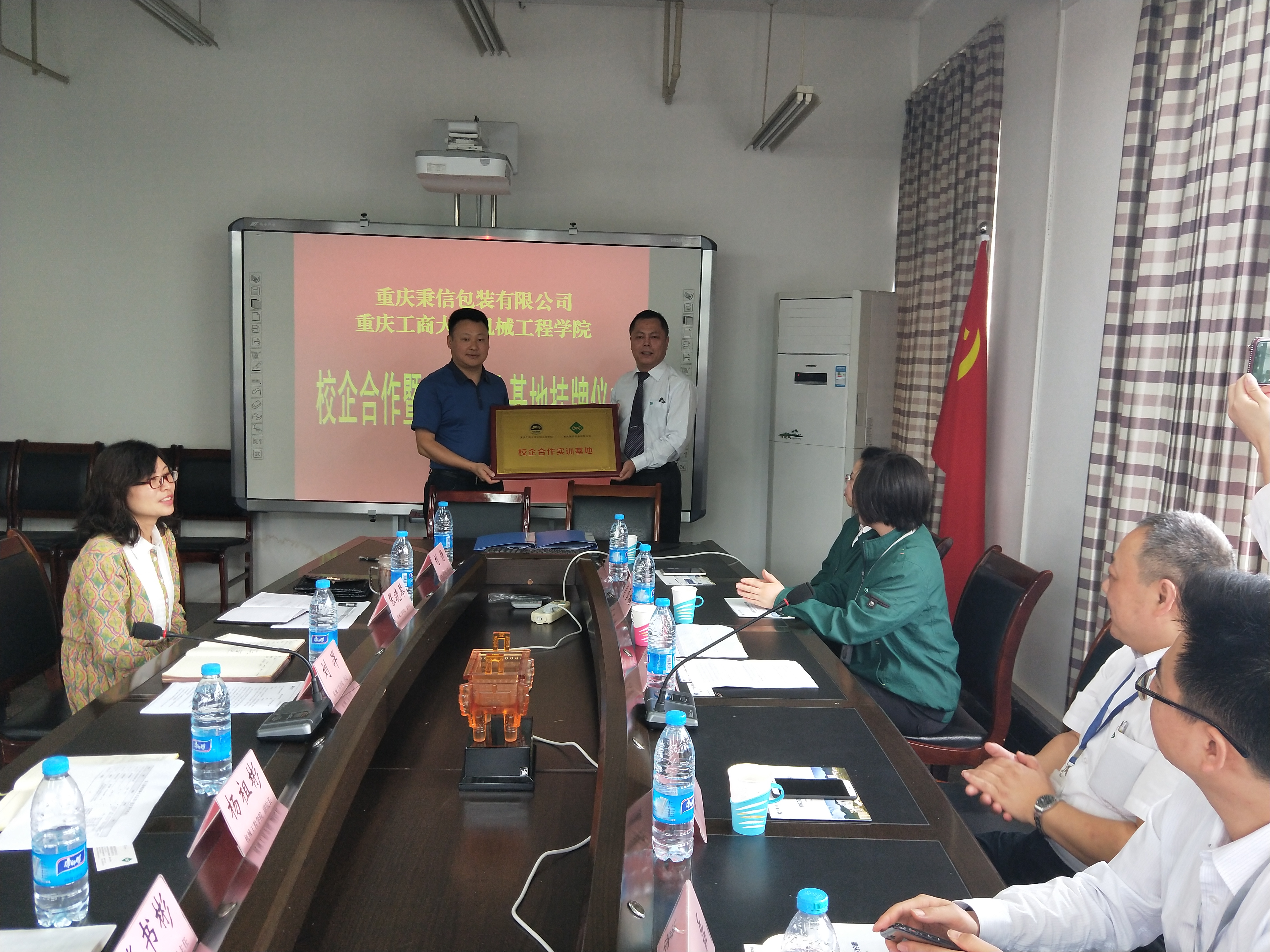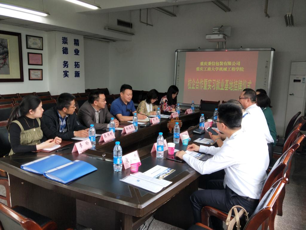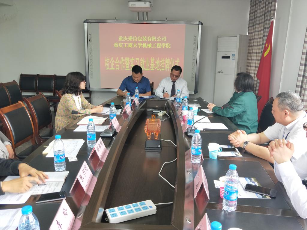 2018年4月27日上午,JN体育、重庆秉信包装有限公司校企合作签约及授牌仪式在jn江南会议室举行。学院分管教学副经理杨祖彬教授主持签约及授牌仪式,公司党总支刘洋书记和张晓琴副书记、党政办刘静主任、包装工程系张书彬主任、学团办李玲主任,秉信包装有限公司西南事业部吴文雪总经理、温建厂长、品管科康谷科长、营业科梁磊科长、人资科肖雪梅科长、校企合作项目负责人宋春霞等参加了签约及授牌仪式。