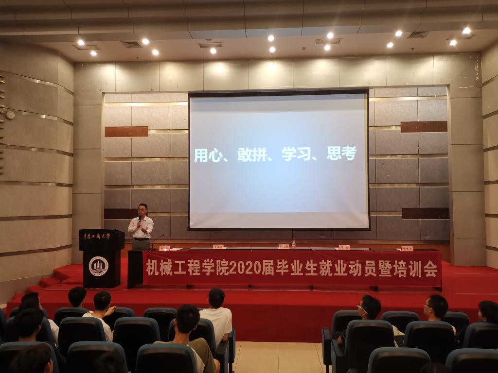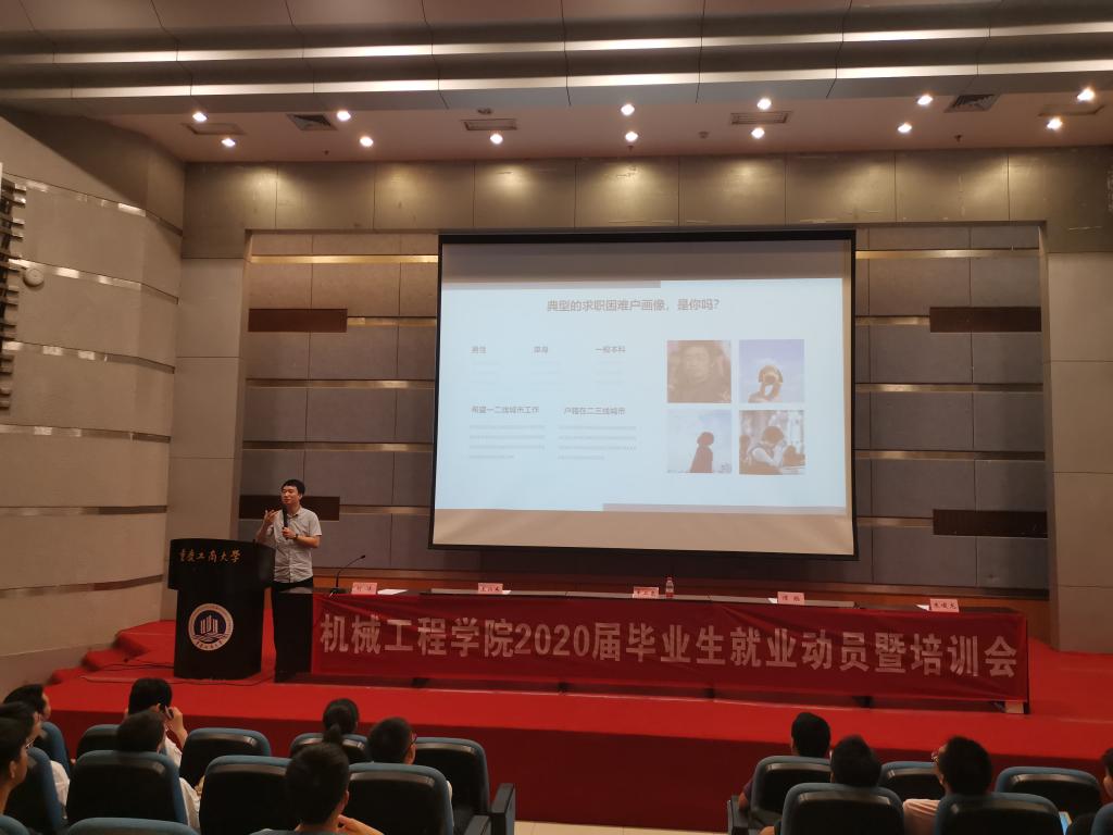 为助力2020届毕业生顺利开启职业生涯,早日实现就业、创业,9月11日晚上6点半,jn江南在7100学术报告厅召开了2020届毕业生就业动员暨培训会。人才招聘处处长申卫东,华晨鑫源重庆汽车有限公司人力资源部部长王兴东,重庆长安跨越集团有限公司招聘配置室主任谭聪,重庆聪筑信息科技有限公司、重庆悟修企业管理咨询有限公司创始人、总经理朱峻龙,毕业班辅导员和学院2020届毕业生参加了本次培训大会。会议由公司党总支书记刘洋主持。