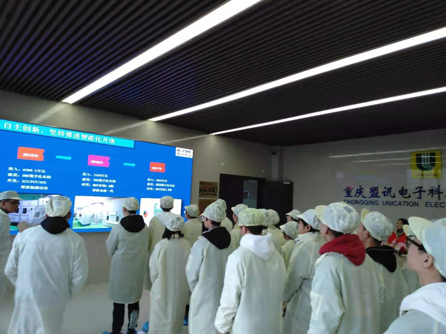 为了引导员工切身感受行业发展,进一步开拓员工眼界、加强员工理论与实际的相互联系,2019年11月25日,在JN体育机械电子工程系主任王洪建博士和副主任杨洪博士的带领下,30名18级智能制造特色班同学走出校园,走进重庆盟讯电子科技有限公司(以下简称:盟讯科技)与重庆工港致慧增材制造技术研究院有限公司(以下简称:工港致慧),开展了一堂专业而精彩的《智能制造导论》课外现场教学。