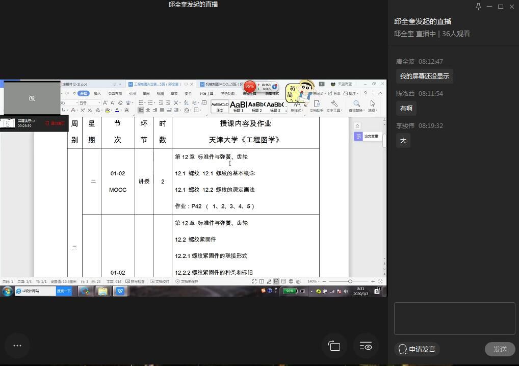 3月2号为网络授课的第一天,学院院领导和校院两级教学督导成员全部进入了所有老师的授课平台进行观摩,各课程开播基本顺利,网络条件良好,员工反响热烈。课程结束后,各位老师也在学院群分享了授课的情况和经验,确立了进一步改进的方向。