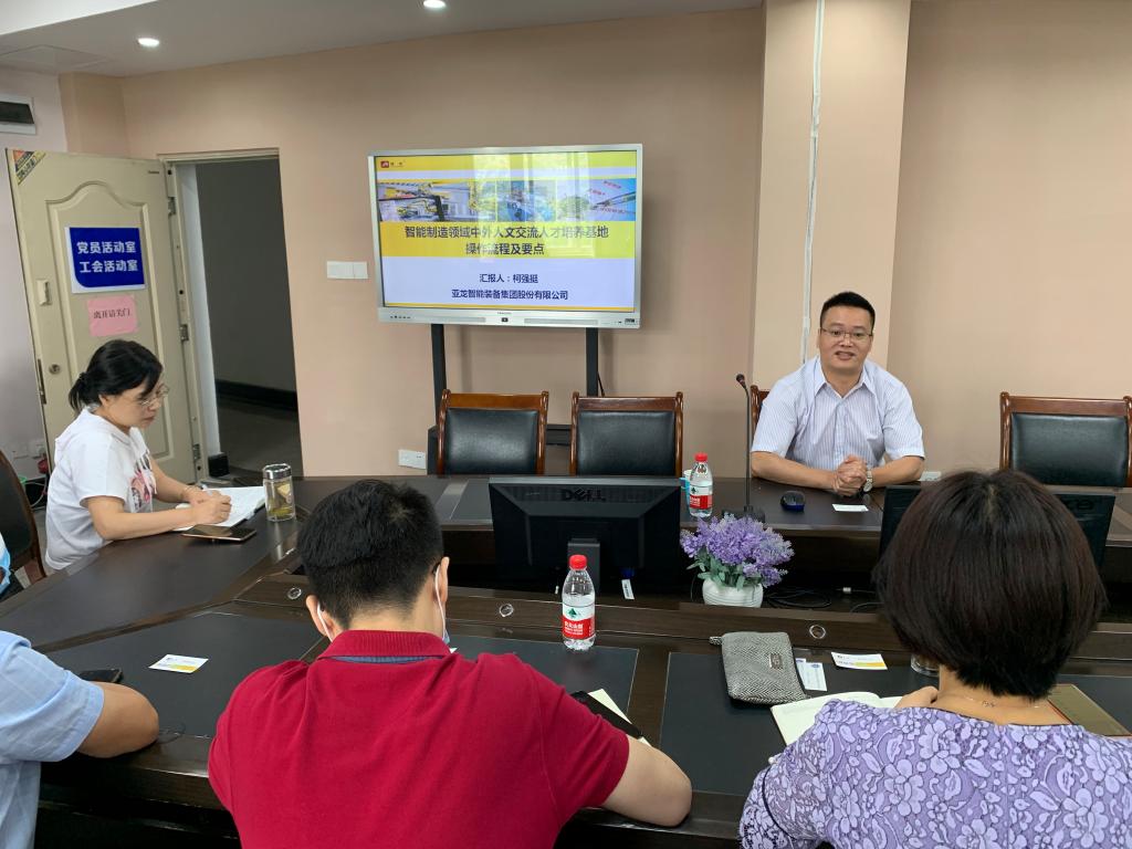 首先,亚龙智能装备集团重庆市场总监柯强挺在介绍教育部中外人文交流中心的成立、主要工作职责等方面做了简要介绍后,就项目概况、项目建设流程、项目合作意向三个方面的内容进行了介绍,该中心着力于帮助高校搭建深化产教融合平台、“双语、双师”教师队伍建设、开发人文交流课程、共建教学资源、促进国际合作交流、开展课题研究、开展服务国际就业创业等工作;并就本次的智能制造领域中外人文交流人才培养基地项目的意义、定位、工作路径等进行了详细的解读,并期望与公司合作开展国家重点研发计划“智能机器人”、数字双胞胎、教育部中外人文交流中心课题三个主要项目。