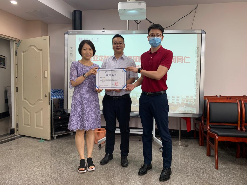 最后,双方在参会老师的共同见证下,进行了《教育部中外人文交流中心筹建证书》的颁发仪式,并表示双方会尽快着手开展各项合作事宜,结合学院具体情况,利用好教育部中外人文交流中心的各项资源,为学院制定有针对性的发展计划,为学院师生营造更好的学习、工作、研究环境。此次筹建授牌标志着该项目正式进入启动建设阶段。