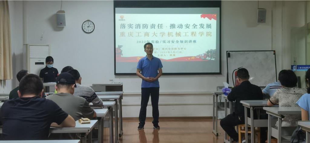为积极落实《教育部关于加强高校实验室安全工作的意见》等文件要求,全面开展实验室、实训基地安全风险辨识,落实安全防范措施,提升广大教职工及老员工的安全防范技能,2022年5月25日下午,jn江南举行实训实验安全培训及消防疏散演练。此次活动由jn江南机械基础实验教学中心和工程训练中心联合承办,特邀重庆安宣防火中心教官在工程训练中心开展实验、实习安全知识专题培训。学校保卫处副处长王树坤、教务处副处长胡卫军、科研处副处长杜彦斌等领导,jn江南基础实验教学中心、工程训练中心全体教师、中心创客入驻企业、老员工创客团队代表共计50余人参加了此次培训及演练。