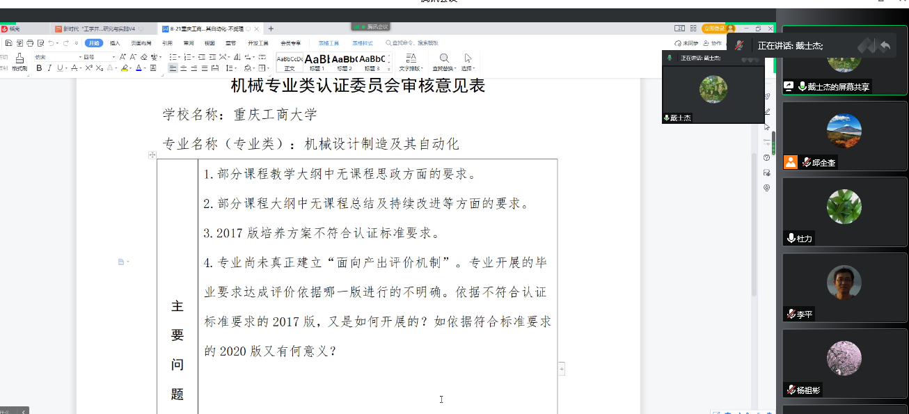 为扎实推进公司工程教育认证和课程教学大纲修订工作,8月4日上午,学院邀请河北工业大学戴士杰教授线上会议形式做了关于“专业认证工作”的专题报告。学院领导班子、学院全体教师参加了本次会议。杜力经理主持会议并致欢迎词。
